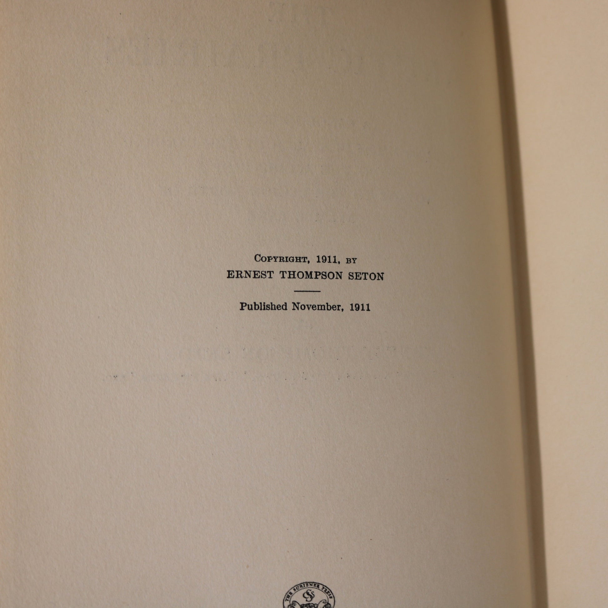 by Ernest Thompson Seton. Published by Charles Scribner's Sons, New York, in 1911.